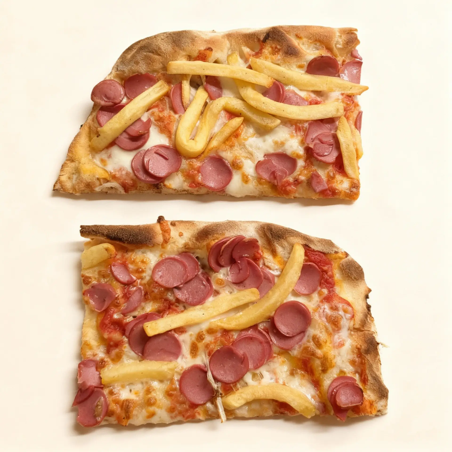 Salsa di pomodoro, mozzarella, patatine e wurstel
